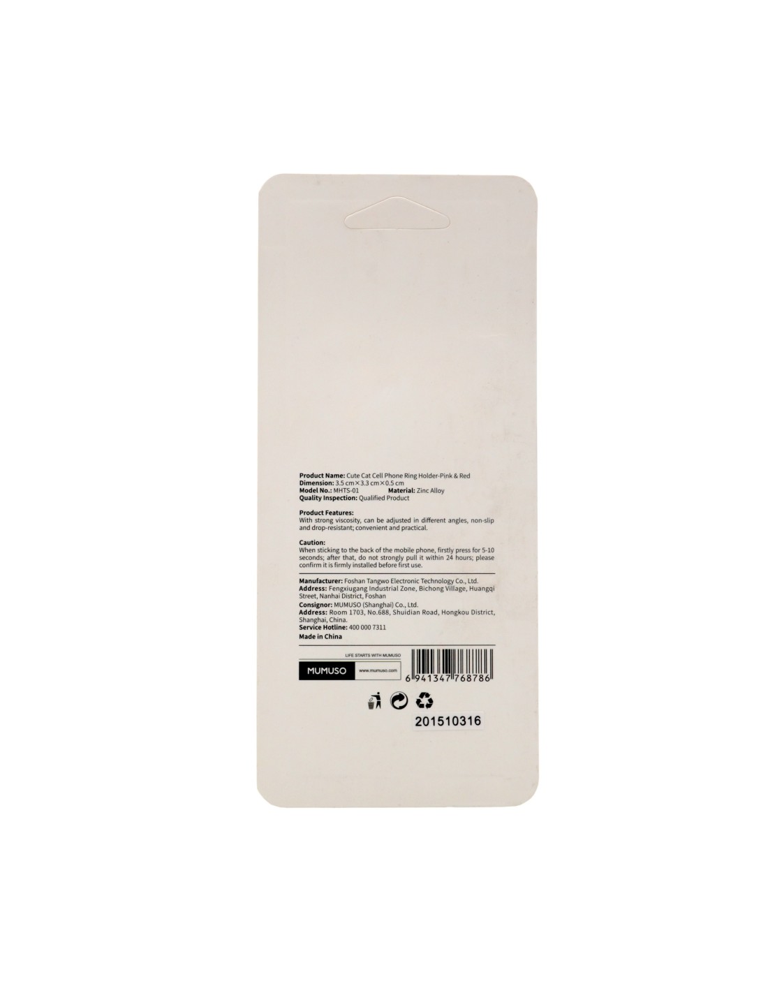 Le support d'anneau pour téléphone portable en forme de chat mignon de MUMUSO, avec sa forte adhérence et sa conception antidérapante, offre une prise sécurisée pour votre téléphone.