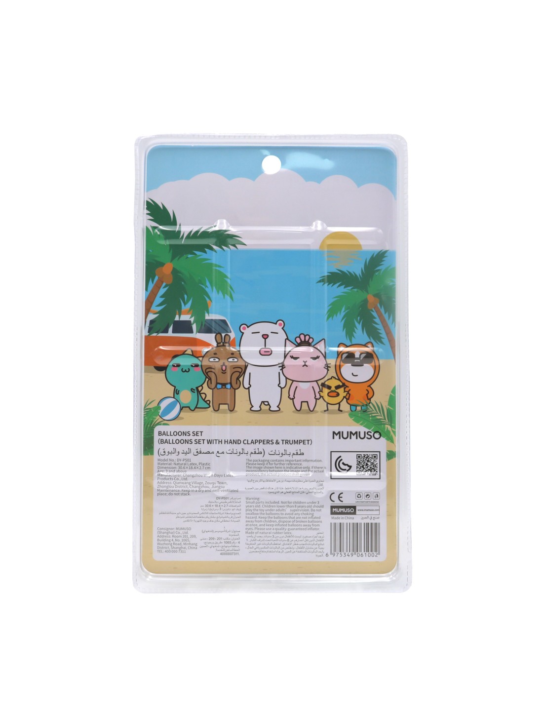 Cet ensemble festif de ballons de MUMUSO inclut deux applaudisseurs colorés et une trompette pour une célébration pleine de joie. Parfait pour des fêtes mémorables et animées !