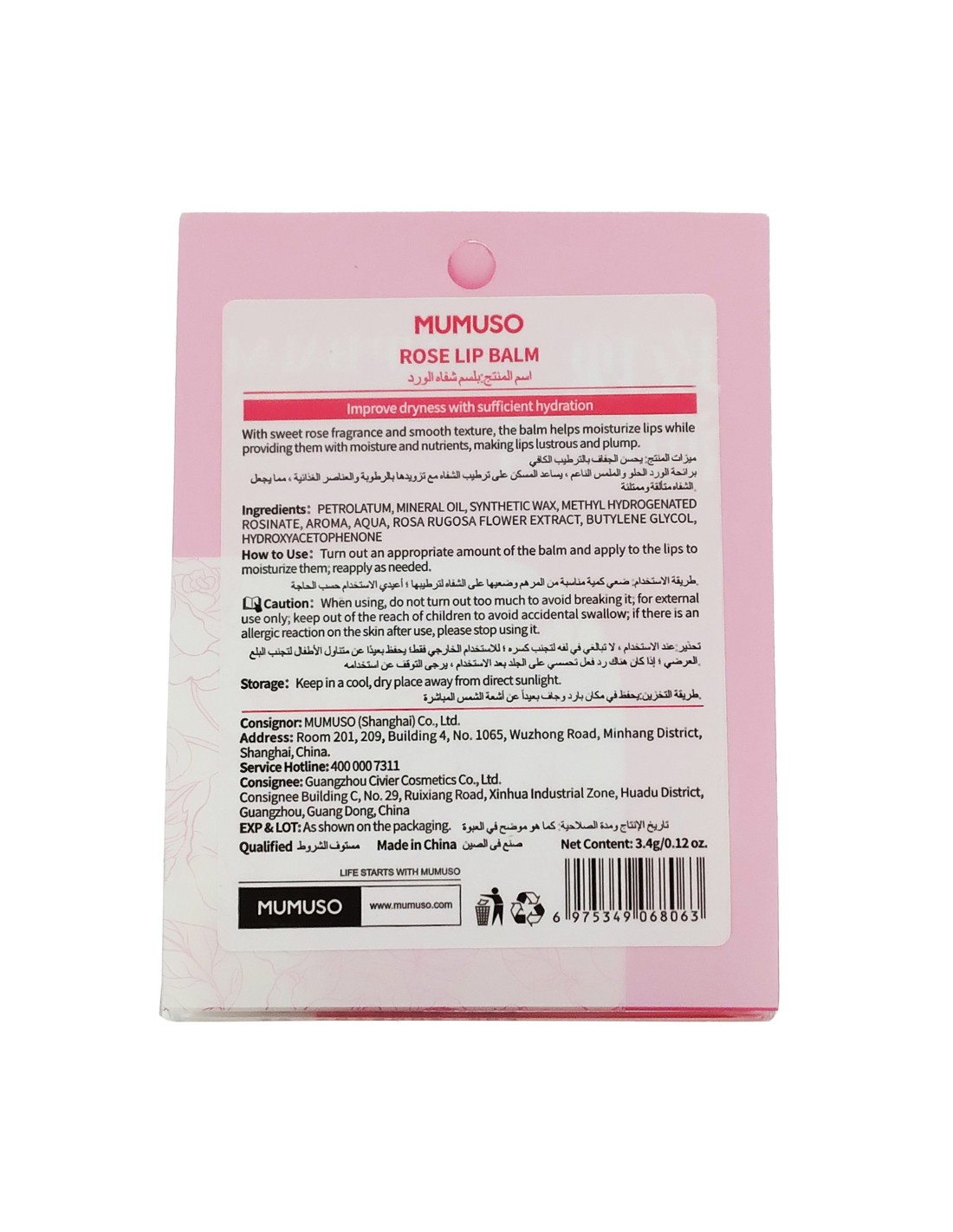 Avec son doux parfum de rose et sa texture onctueuse, ce baume de Mumuso aide à hydrater les lèvres tout en leur apportant de l'eau et des nutriments, rendant les lèvres lustrées et pulpeuses.