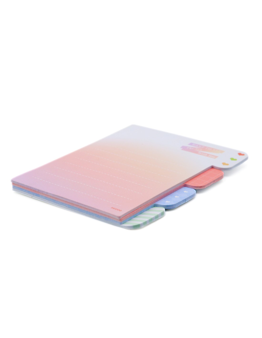 Notre NotePad "Dreamlike" est un carnet index multifonctionnel conçu pour ajouter une touche d'élégance et d'organisation à vos tâches quotidiennes. Avec ses jolies couleurs pastel, il est parfait pour la prise de notes, la planification et l'organisation de vos idées. Chaque carnet contient 6 feuilles de 8x1 mm, fabriquées en papier de haute qualité.