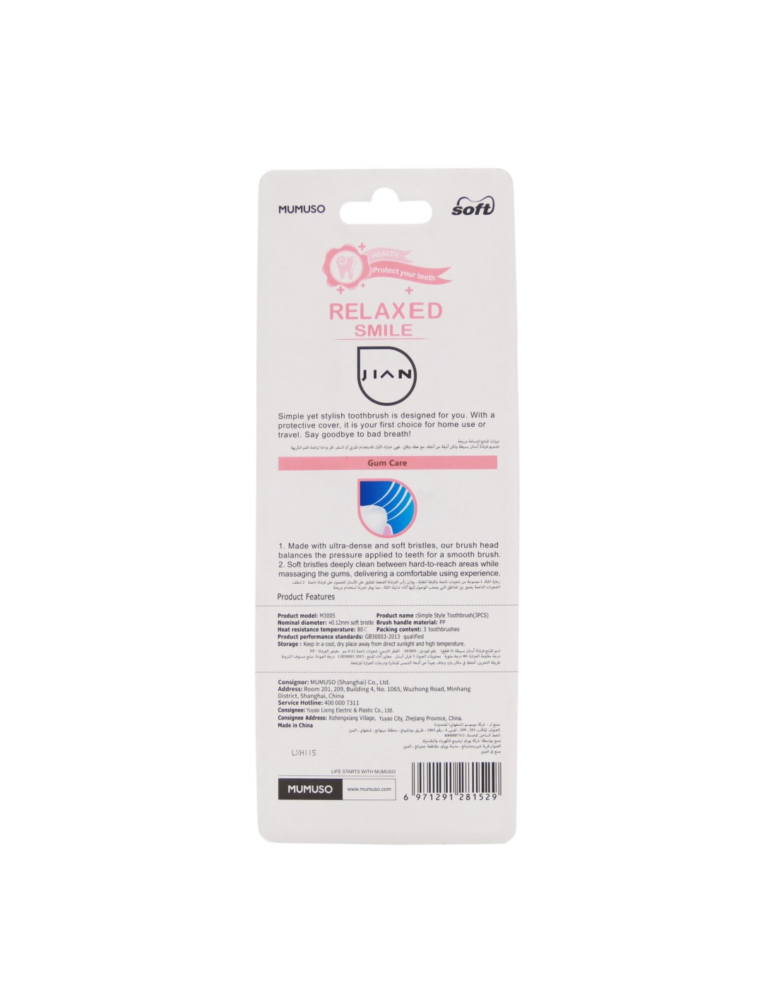Ce pack de 3 brosses à dents "souple" de MUMUSO est spécialement conçue pour faciliter le brossage quotidien des dents sans abîmer même les gencives les plus sensibles.