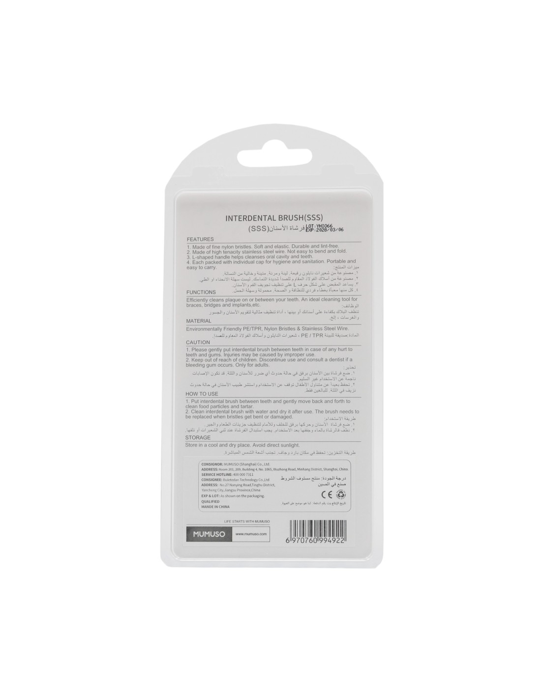La Brosse Interdentaire SSS de MUMUSO est l'outil ultime pour une hygiène bucco-dentaire impeccable ! Dotée de poils en nylon fins et souples, elle glisse en douceur entre vos dents pour éliminer efficacement la plaque et les résidus. Son manche en forme de L facilite le nettoyage de la cavité buccale et des dents, tandis que son fil en acier inoxydable haute résistance garantit une durabilité exceptionnelle. Chaque brosse est également munie d'un capuchon individuel pour une hygiène parfaite et une portabilité optimale.