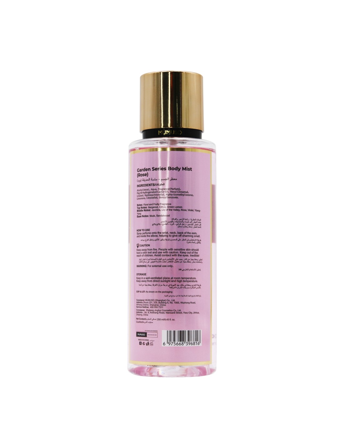 Notre brume corporelle (rose) Garden Series de MUMUSO offre une fragrance florale et fruitée où les notes de tête d'agrumes, de bergamote et de citron vert se mêlent habilement aux notes de cœur de rose, de muguet, de violette et d'ylang-ylang, tandis que les notes de fond de musc et de bois de santal ajoutent une touche sensuelle et envoûtante.