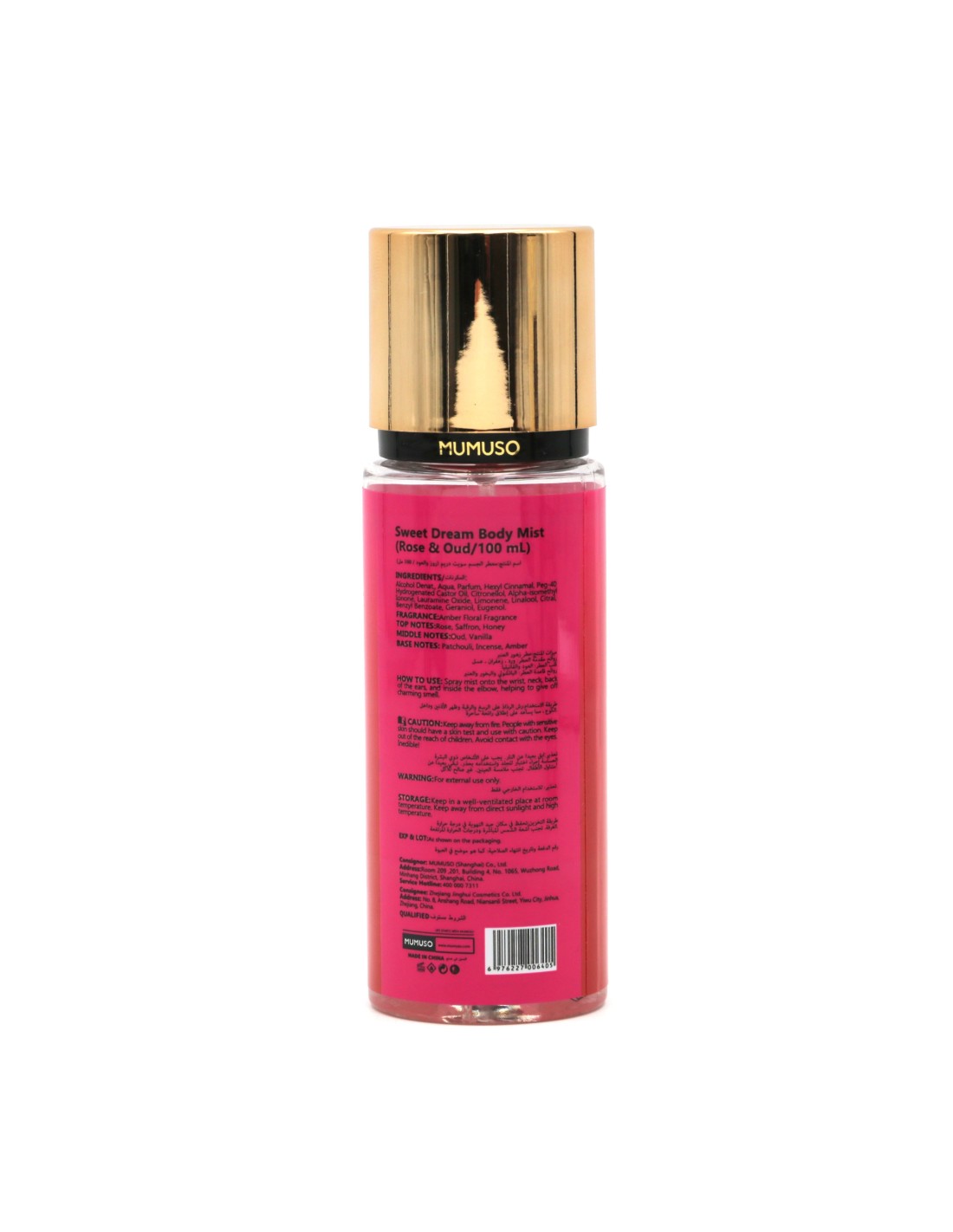 Plongez dans un rêve parfumé avec le Sweet Dream Body Mist Rose & Oud de Mumuso, une fusion enchanteresse de roses luxuriantes et de bois d'oud sensuel. Notes de tête : rose, safran et miel vous accueillent avec une douceur enivrante, Notes de cœur : oud et vanille ajoutent une profondeur mystérieuse à cette fragrance captivante, Notes de fond : patchouli, encens et ambre enveloppent votre peau d'une aura chaleureuse et sensuelle.