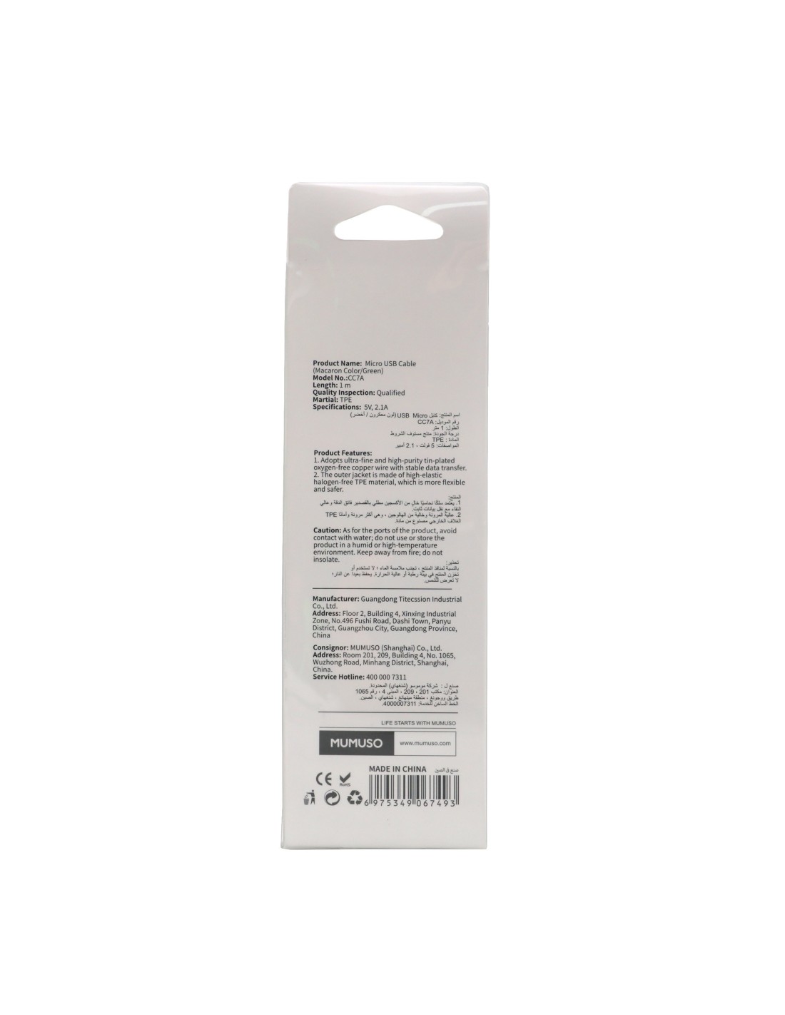 Avec un design esthétique "macaron vert", le câble MICRO USB de MUMUSO avec un mètre de long ,allie performances fiables et style élégant pour la charge et le transfert de données de vos appareils.