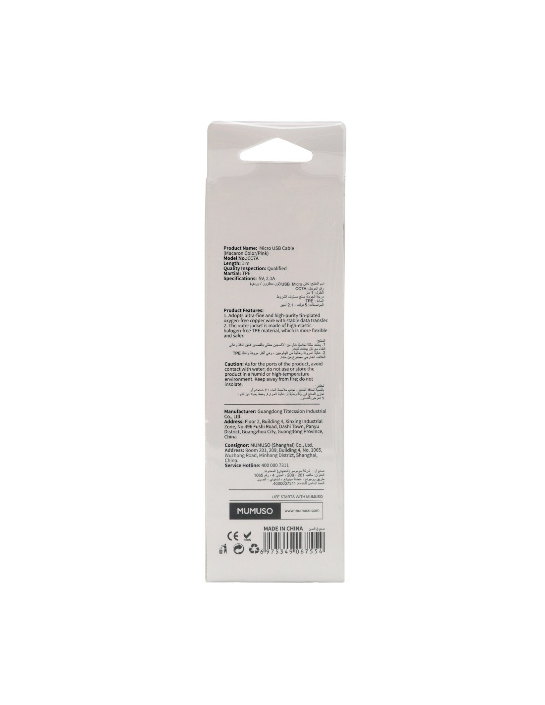 Avec un design esthétique "macaron rose", le câble MICRO USB de MUMUSO avec un mètre de long ,allie performances fiables et style élégant pour la charge et le transfert de données de vos appareils.