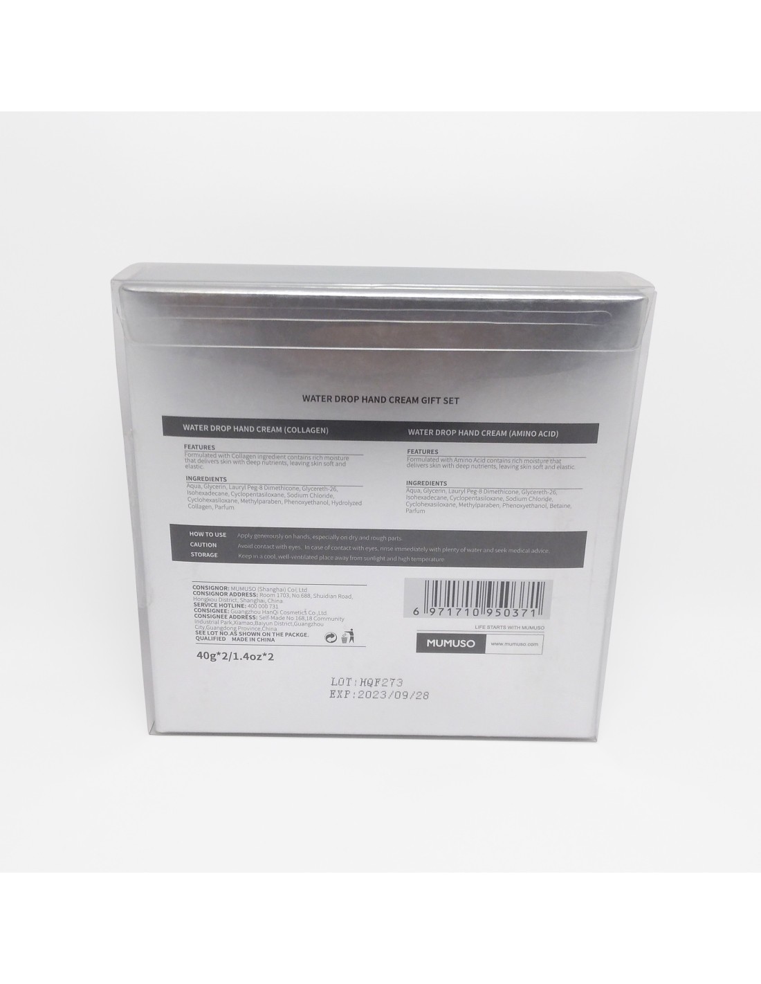 Ce pack de deux crèmes de Mumuso hydrate et éclaircit la peau des mains, la rendant tendre et lisse, l'une au collagène et l'autre aux acides aminés.