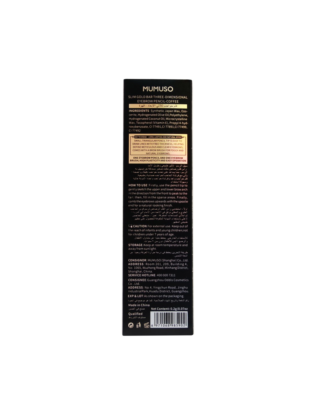 Ce crayon à sourcils tridimensionnel SLIM GOLD BAR (Marron Café) de MUMUSO a une petite pointe de crayon triangulaire, facile à utiliser, l'épaisseur du trait est libre. Sa brosse à sourcils renforcera son effet naturel pour une longue tenue.