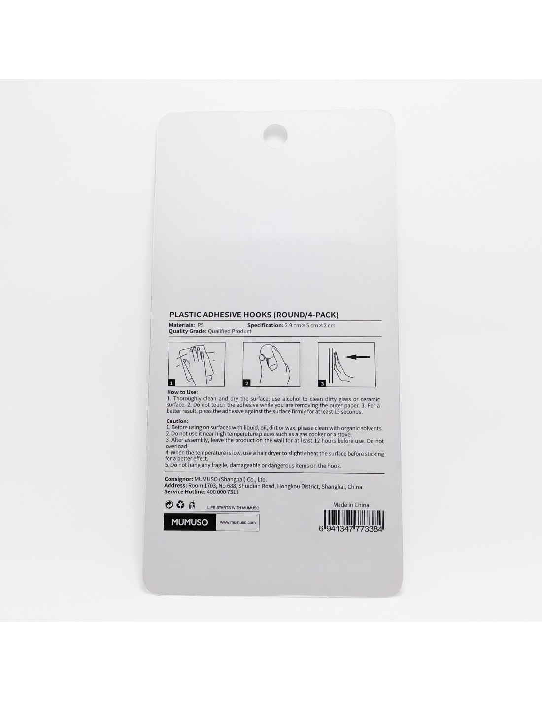 Le crochet auto-adhésif circulaire de MUMUSO en lot de quatre peut être facilement collé au verre, au bois, au métal, à la céramique, aux carreaux, etc.L'acier inoxydable rend le crochet ferme et peut accueillir toutes sortes d'accessoires, ne dépassant pas un kilogramme.