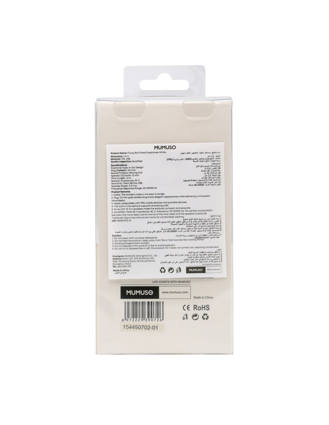 Les écouteurs "Flying Bird - Blanc" sont un mélange de style et de qualité audio exceptionnelle, doté d' un câble tressé anti-emmêlement de 1.2 m