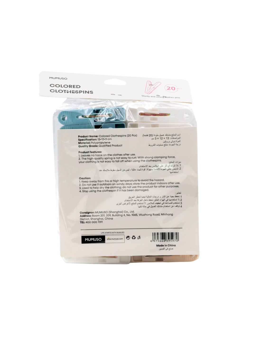 Fabriquées en plastique de haute qualité, les pinces à linge de MUMUSO en set de 20 unités colorées, allient durabilité et élégance pour une utilisation pratique au quotidien.