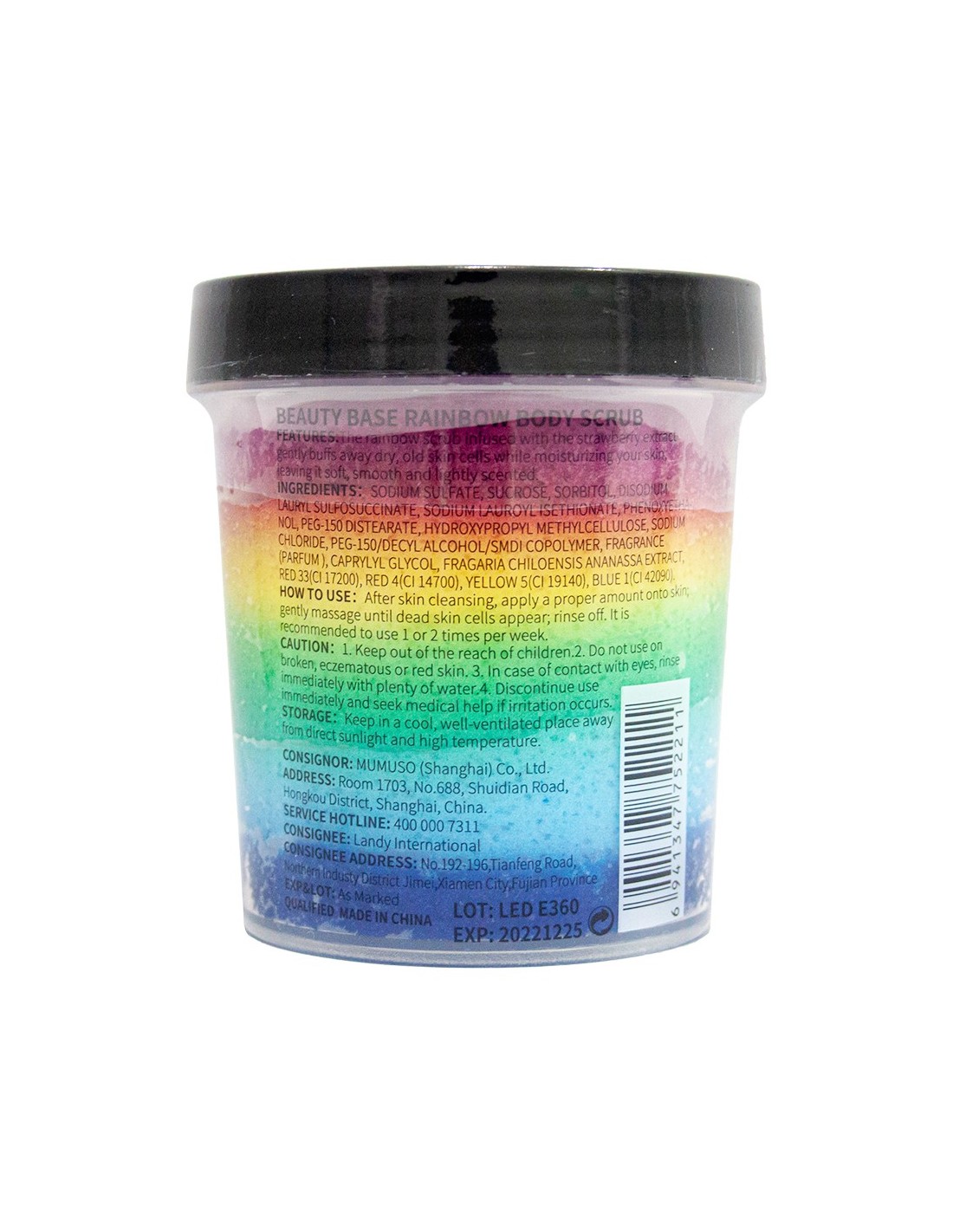 Le gommage BEAUTY LAB RAINBOW infusé d'extrait de fraise élimine en douceur les vieilles cellules mortes de la peau tout en l'hydratant, la laissant douce, lisse et légèrement parfumée.