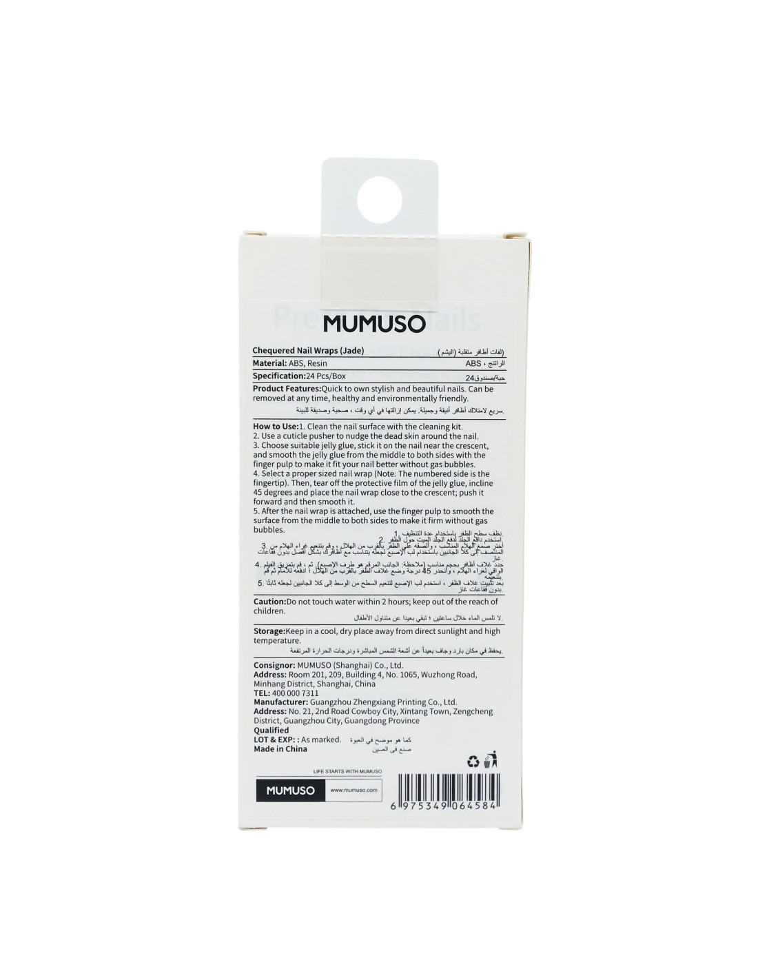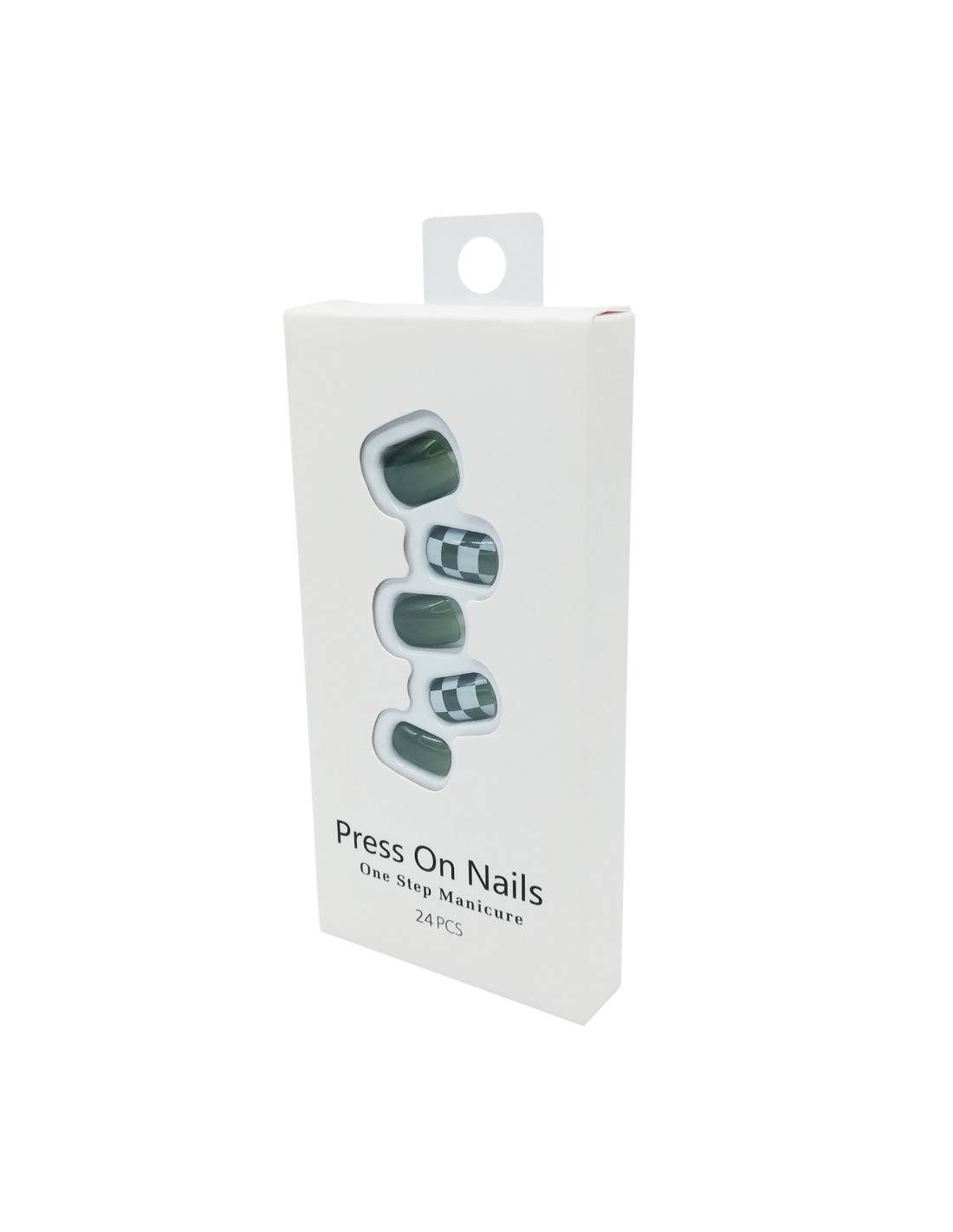 Obtenez rapidement des ongles élégants et beaux grâce aux faux-ongles de MUMUSO, qui peuvent être retirés à tout moment, sains et respectueux de l'environnement. Le motif damier jade et blanc des faux-ongles de MUMUSO vendus en paquet de 24 unités fera craquer toutes les nail addict·e·s. avec ses petits carreaux bicolores et bien ordonnés jade et blanc, avec d'autres ongles tout en vert jade : à vous de faire les compositions que vous voulez et de développer votre fibre artistique. Le motif du plateau de jeu d’échecs commence en effet à envahir nos ongles pour leur donner un look fun à souhait pile pour colorer cette saison ! Les avantages des faux ongles de MUMUSO : •Économiques et écologiques, nos faux ongles sont réutilisables. Fini les grosses sommes dépensées chez l’esthéticienne tous les mois ! •Adaptés à votre mode de vie, vous pouvez les garder le temps d’une soirée ou plus, c’est vous qui choisissez ! •Rapide et très simple, la pose est très simple et se fait en quelques minutes. •Respectueuse de votre santé, la pose n’abîme pas vos ongles naturels et évite l’accumulation de bactéries sous les ongles du au port prolongé . •Pratique, vous pouvez les emporter partout où vous voulez !