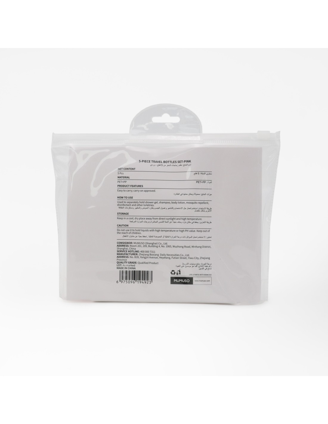 Notre ensemble de voyage est composé de 1 flacon vaporisateur, 1 flacon pompe, 2 flacons vissables, une brosse à cheveux pliante ; le tout rangé soigneusement dans une trousse zippée. Vous pouvez emporter tout ce dont vous avez besoin, des produits de douche aux désinfectants, sans encombrement. Des étiquettes avec différentes appellations sont fournies pour faciliter l'organisation.