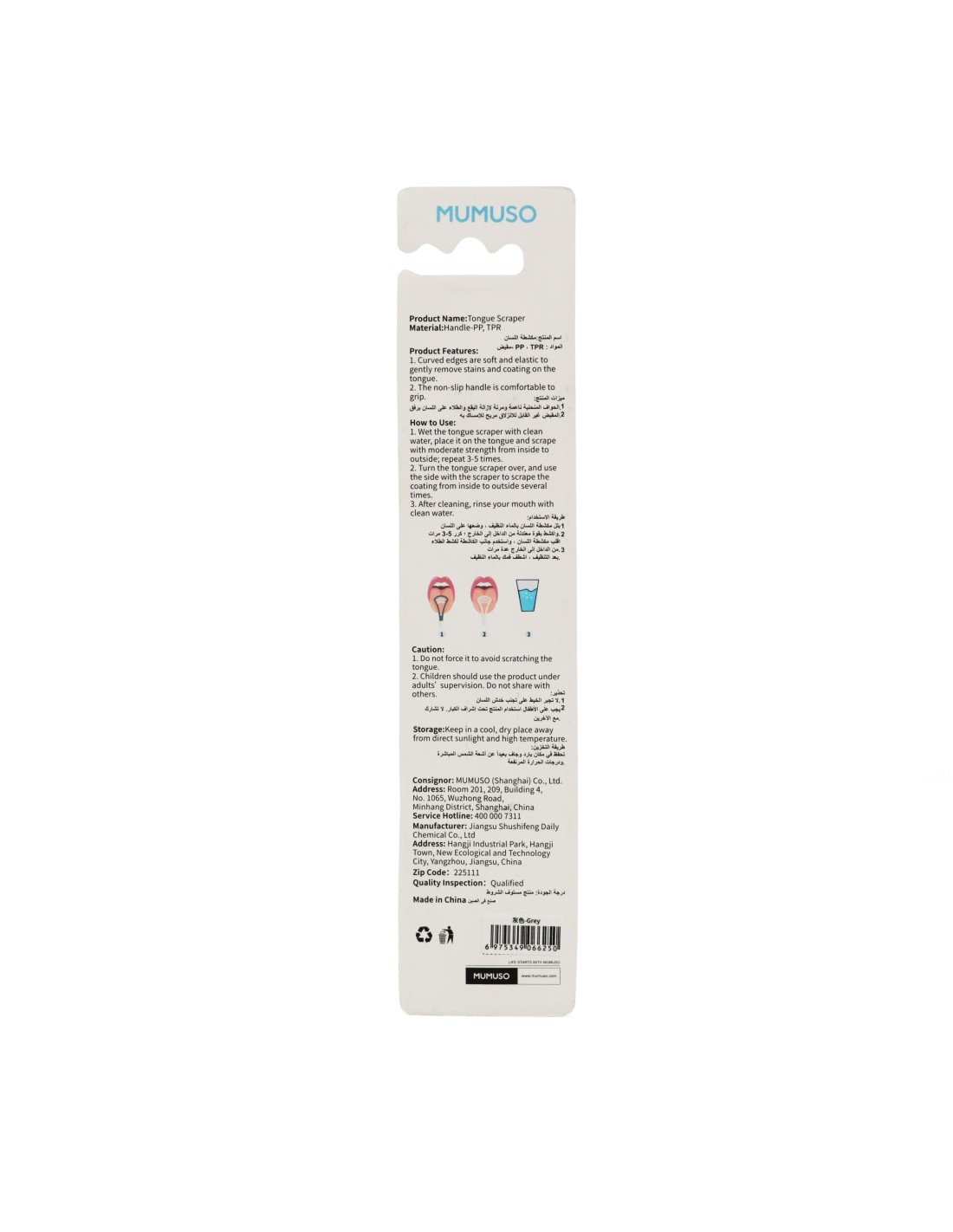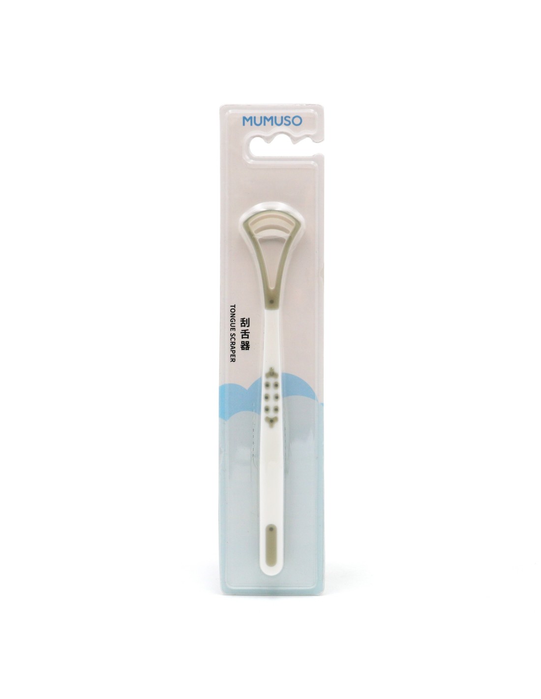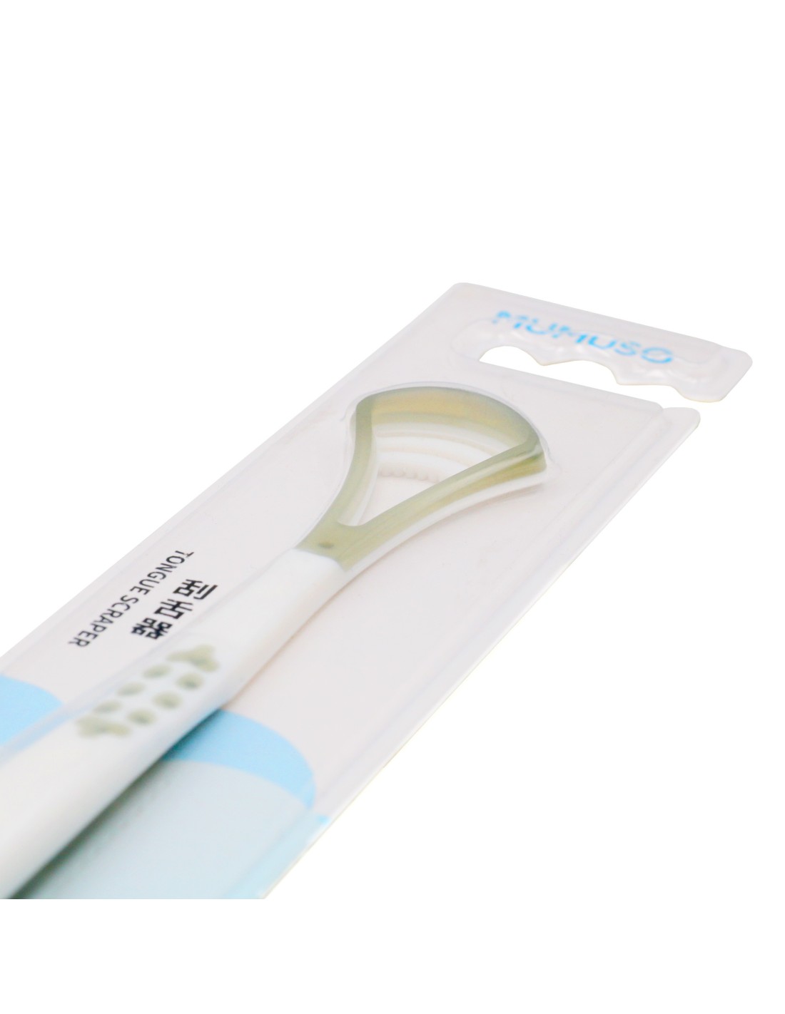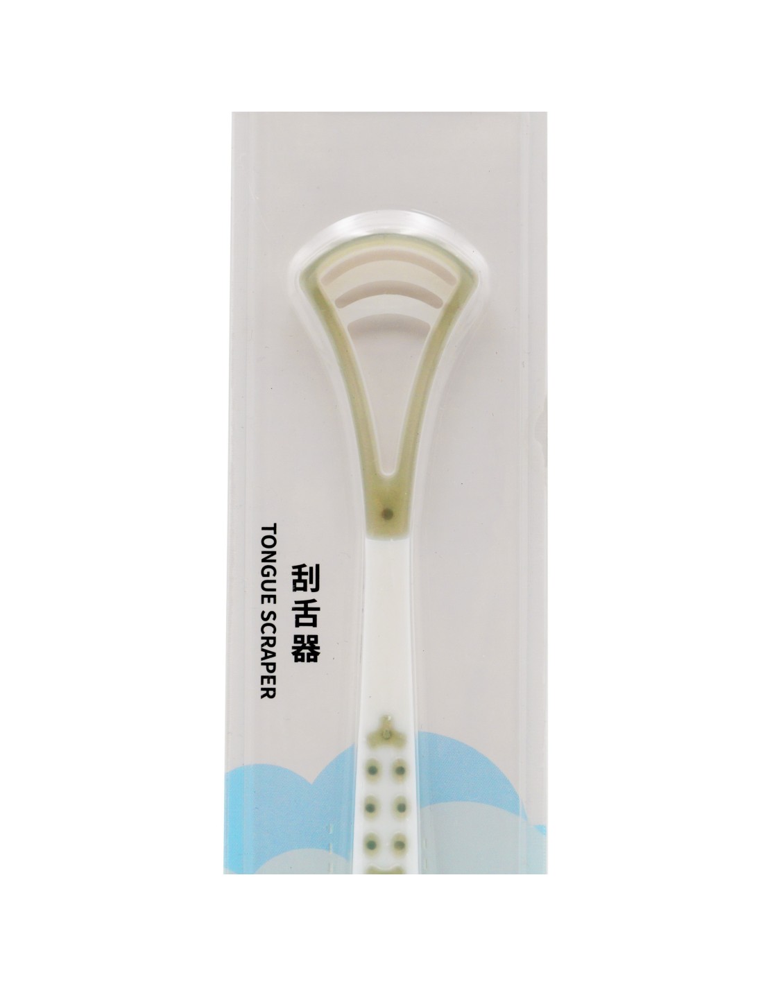 - 1. Mouillez le gratte-langue avec de l'eau propre, placez-le sur la langue et grattez avec une force modérée de l'intérieur vers l'extérieur ; répétez 3 à 5 fois.