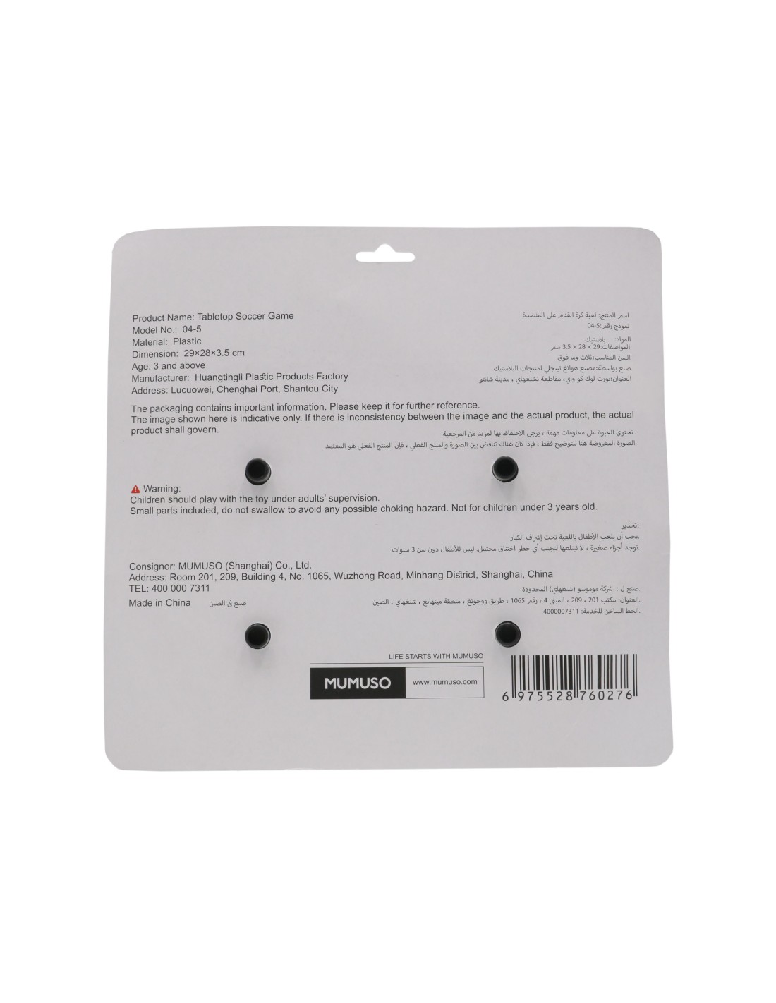 Le jeu Tabletop Soccer de MUMUSO, aux dimensions 29x28x3.5 cm offre une expérience divertissante pour tous les amateurs, petits et grands. Adapté aux enfants de 3 ans et plus, c'est une façon excitante d'initier les plus jeunes au monde du football tout en offrant des moments de jeu intergénérationnels.