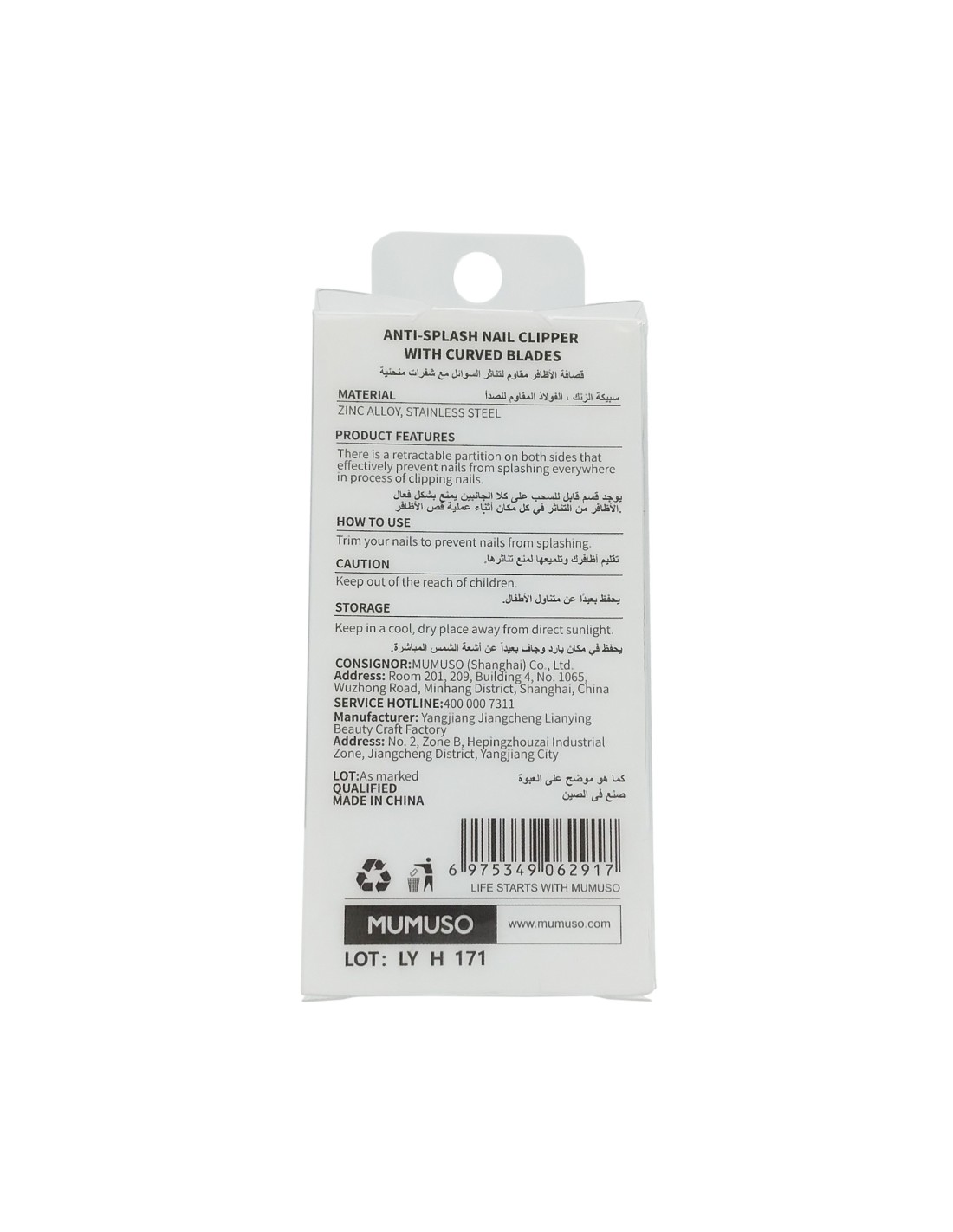 Accessoire indispensable dans votre salle de bain, le coupe ongles anti-éclaboussure de MUMUSO vous permet de couper vos ongles des mains mais aussi de vos pieds, avec la même efficacité. Il est idéal pour les personnes qui ne souhaitent pas posséder une multitude d'instruments à manucure et à pédicure. Il possède des lames tranchantes pour une coupe nette et efficace sans risque de casser ou dédoubler vos ongles. Ces dernières sont également incurvées afin d'épouser parfaitement la forme de vos ongles pour une manucure avec un rendu naturel. Fabriqué à partir d'acier inoxydable, le coupe ongles vous offre une très longue durée de vie en résistant parfaitement à l'eau.