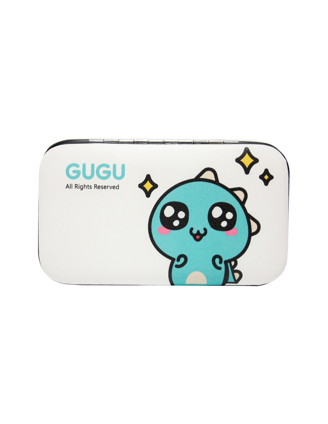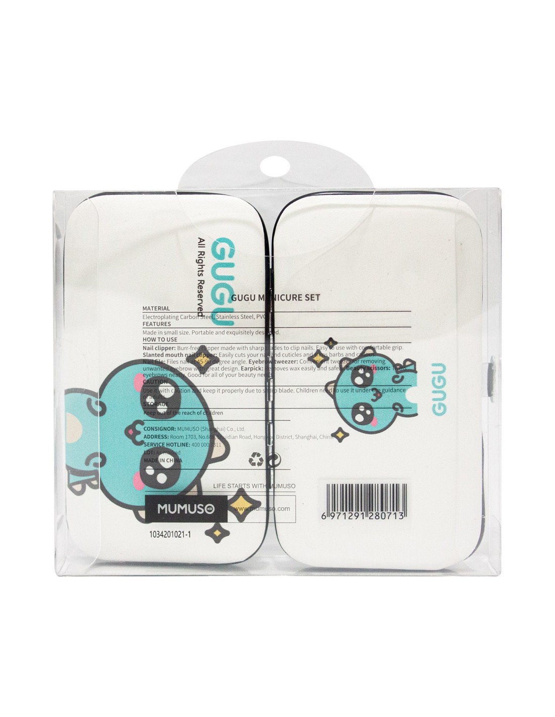 Très joli set de manicure (6 pièces) aux effigies de GUGU, la plus petite de la famille MUMUSO pour entretenir régulièrement vos mains (et même vos ongles de pieds) tout en praticité et en élégance.
