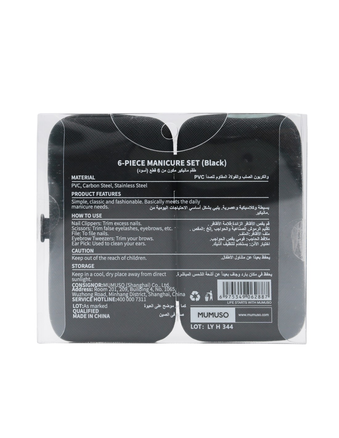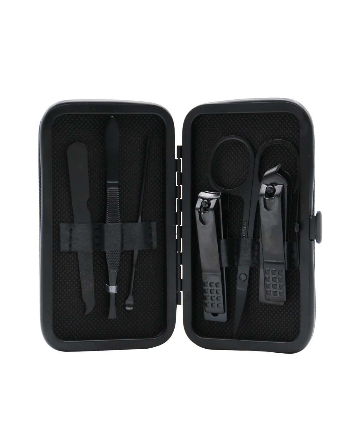 Le set de manucure noir nuit 6 pièces de MUMUSO est livré dans un étui en similicuir très bien fait. L'ensemble se compose d'une paire de ciseaux, de deux coupe-ongles différents (un large et un plus étroit pour les travaux de détail, par exemple pour les cuticules sèches ou rugueuses), une lime à ongles en métal, une pince à épiler et un repousse-cuticule ( à utiliser aussi comme cure-oreille). Un ensemble de manucure à la fois pratique et élégant.