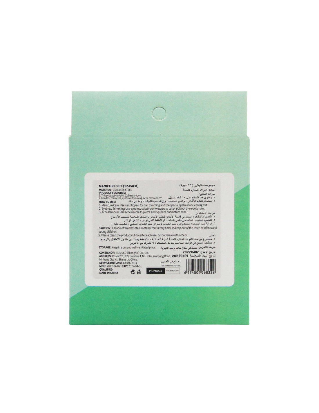 Ce set "Manucure" de MUMUSO contient 12 outils de beauté, utilisés pour la manucure, la taille des sourcils, l'élimination de l'acné, etc...