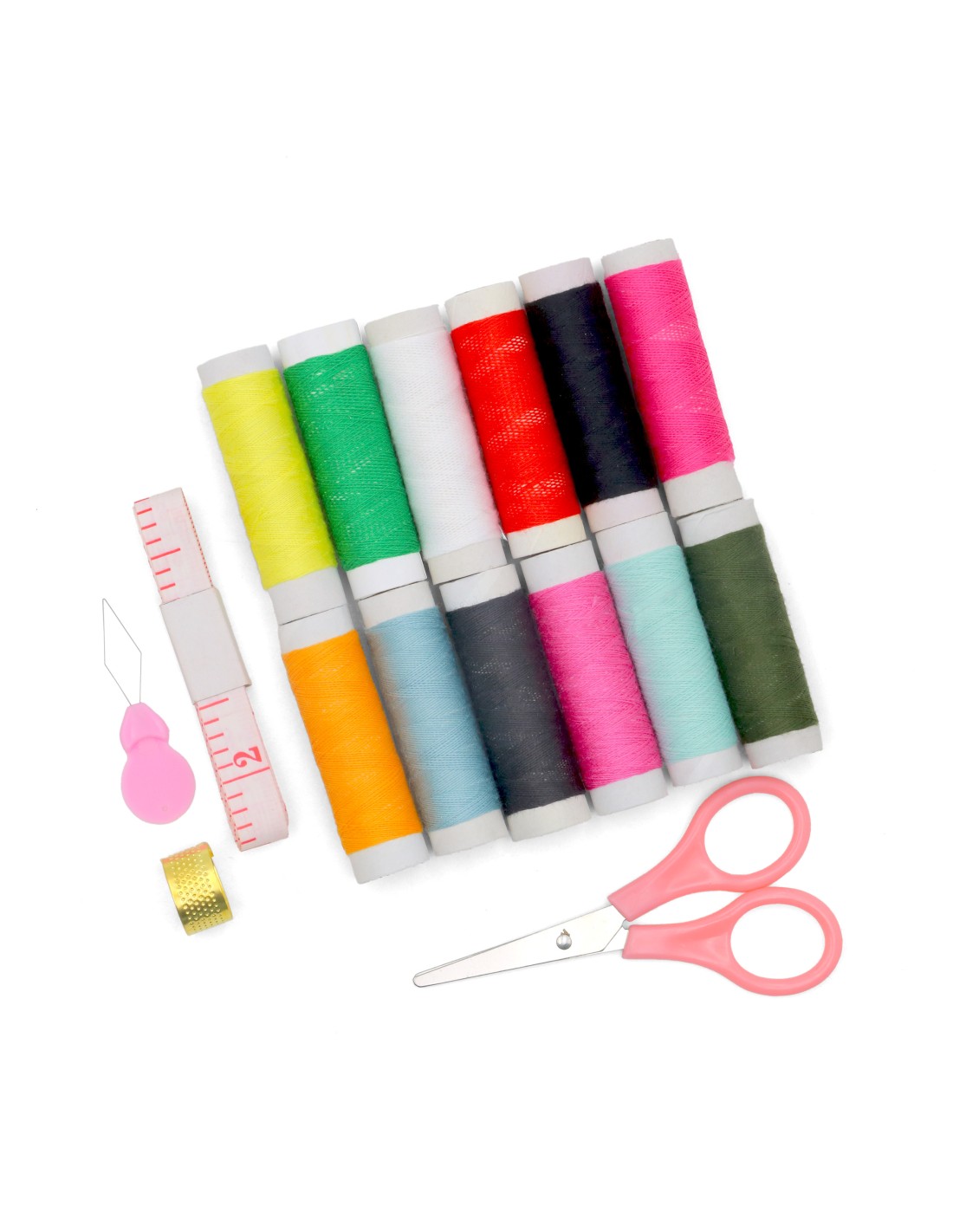 Ne soyez plus jamais pris au dépourvu avec ce kit de couture multifonction rose, compact et équipé de tous les outils essentiels.