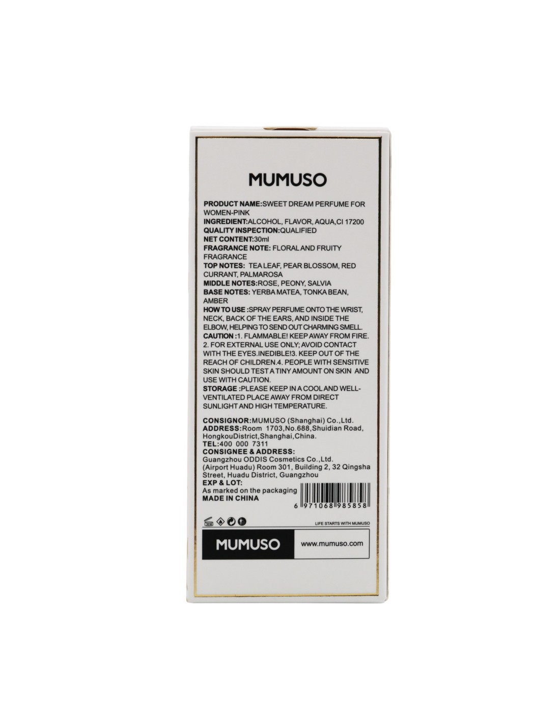 Le parfum "Sweet Dream" pour femmes - Rose de MUMUSO est une fragrance captivante qui vous transporte dans un monde de rêves sucrés. Ses notes de tête légères de feuille de thé, de fleur de poirier, de groseille rouge et de palmarosa créent une ouverture fraîche et délicieuse. Les notes de cœur de rose, de pivoine et de sauge ajoutent une dimension florale et élégante à la composition. Les notes de base de yerba mate, de fève tonka et d'ambre apportent une profondeur sensuelle et chaleureuse. Une invitation au voyage dans un lieu de douceur et de féminité.