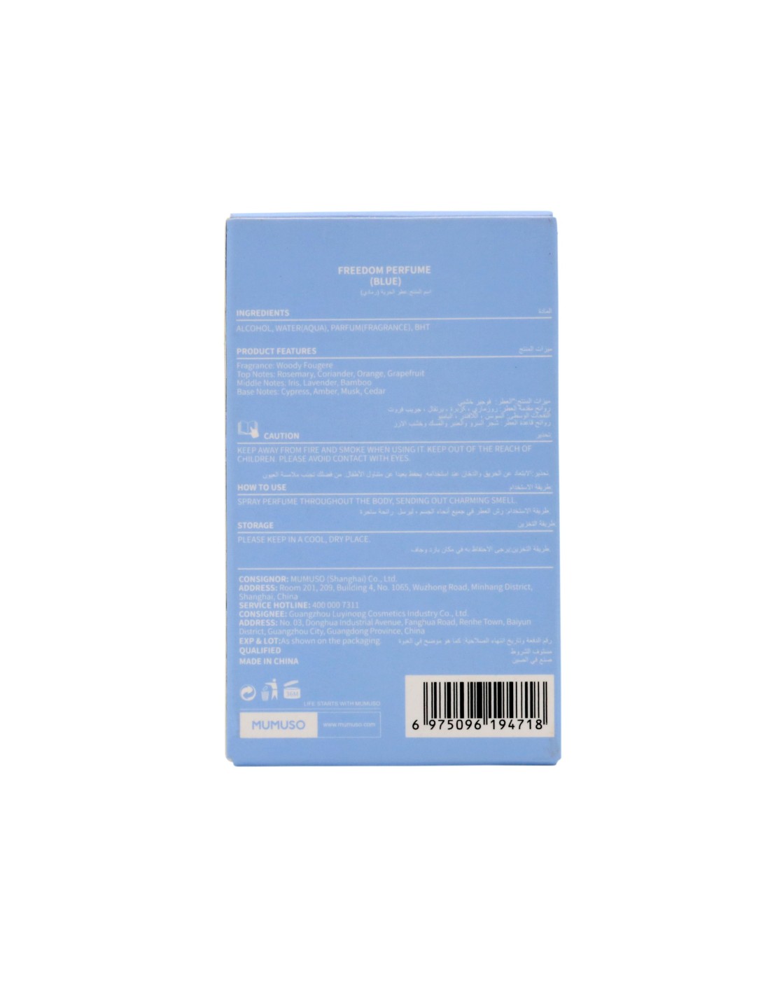 Le parfum "FREEDOM" (Bleu) de MUMUSO laisse la peau délicatement parfumée et rafraichie tout en offrant une protection efficace contre les odeurs et l'humidité pour une tenue longue durée.