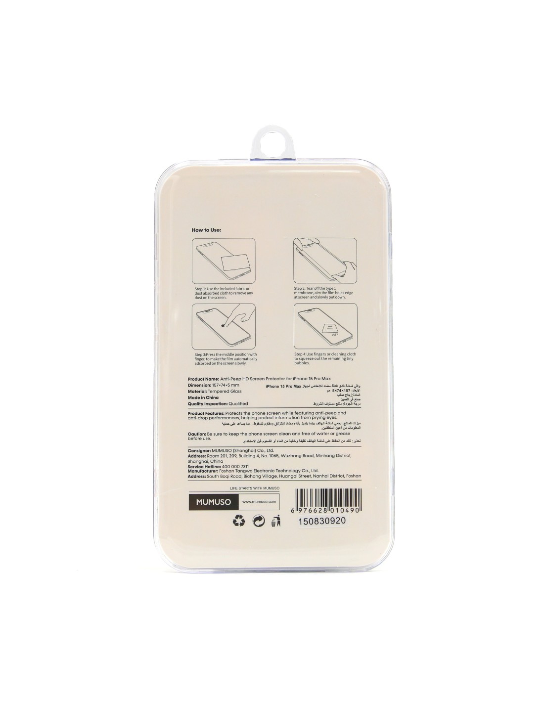 Notre protège-écran Anti-Espion HD pour iPhone 15 Pro Max offre une protection optimale et préserve la confidentialité de vos informations. Fabriqué en verre trempé HD avec un revêtement anti-peep (ati-espion), il empêche les regards indiscrets de voir votre écran, visible uniquement de face. Avec des dimensions de 157x74x5 mm, il garantit un ajustement parfait et une installation facile. Protégez votre écran contre les chutes et préservez la clarté et la sensibilité tactile de votre iPhone 15 Pro Max tout en gardant vos données privées.