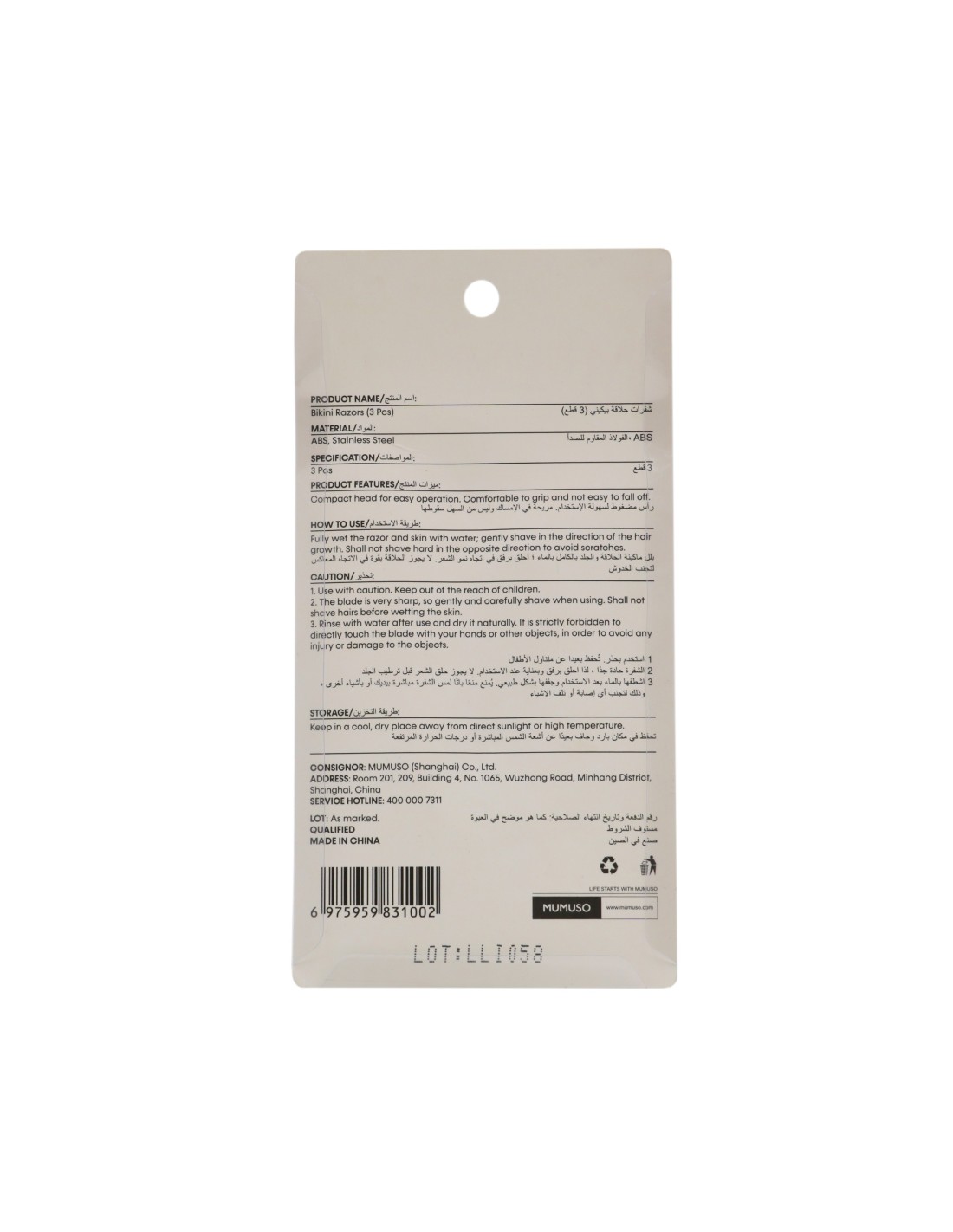 Le Rasoir Bikini de MUMUSO est l'outil idéal pour une épilation précise et en douceur de la zone du bikini. Facile à utiliser et conçu pour un rasage efficace, ce lot de 3 rasoirs vous permettra de garder une peau douce et nette.