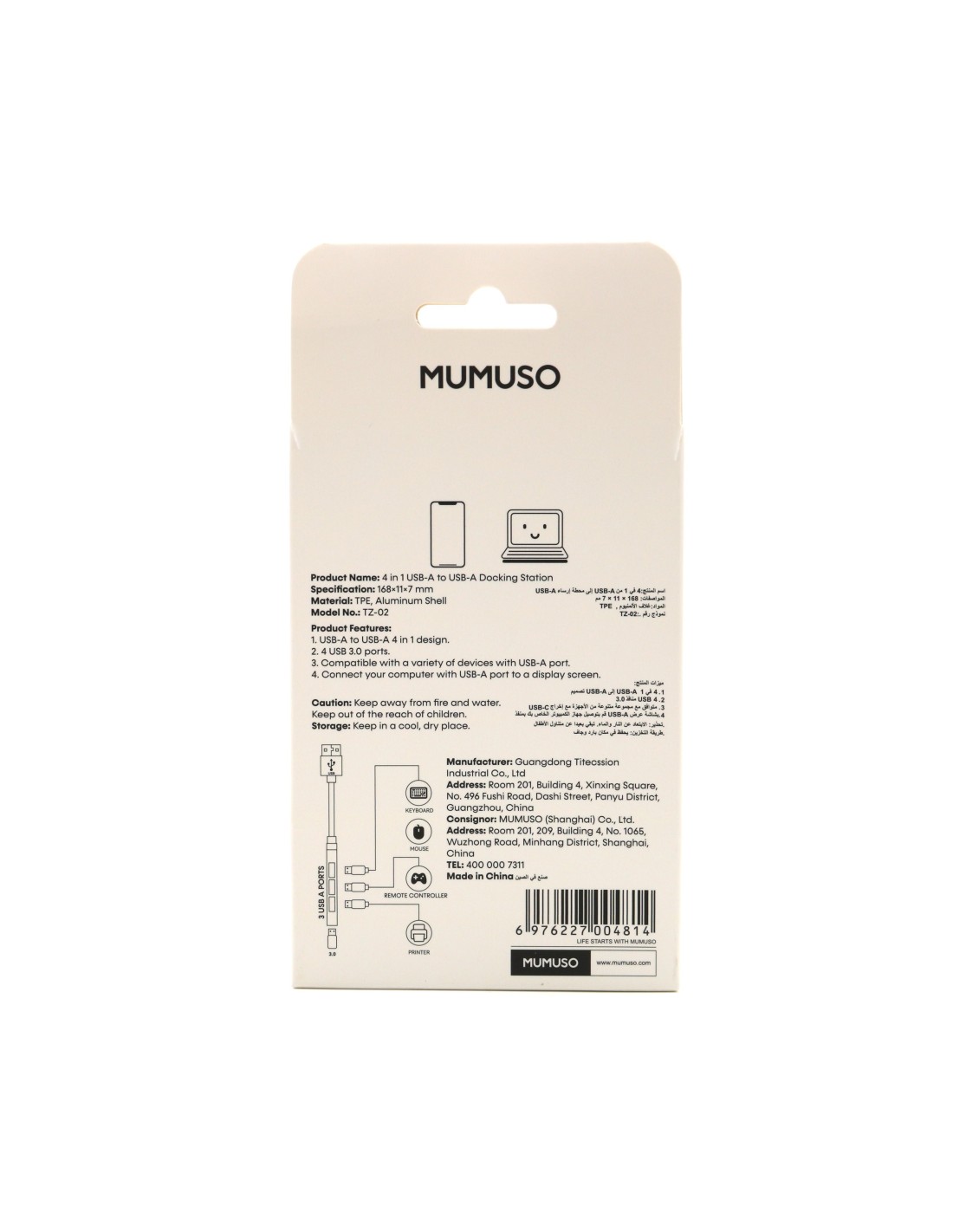 La Station d'Accueil USB-A 4 en 1 est l'accessoire parfait pour élargir les capacités de votre ordinateur. Avec ses quatre ports USB 3., elle permet des connexions rapides et fiables. Compatible avec une variété de dispositifs équipés de ports USB-A, cette station d'accueil en TPE et aluminium allie durabilité et design élégant. Connectez facilement votre ordinateur à un écran externe et profitez d'une productivité accrue.