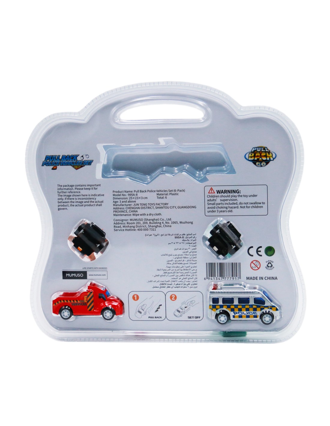 Fabriqué en plastique, doté d'un design proche de la réalité, cet ensemble de 6 voitures de police ne blesseront pas les petits doigts de vos enfants. Appuyez simplement sur la voiture, maintenez-la au sol en la tirant en arrière et la voiture démarrera. Elles stimulent grandement l'imagination des enfants et cultivent leur curiosité. Elles vont promouvoir la capacité de reconnaissance et de créer différents scénarii de course auto de police.
