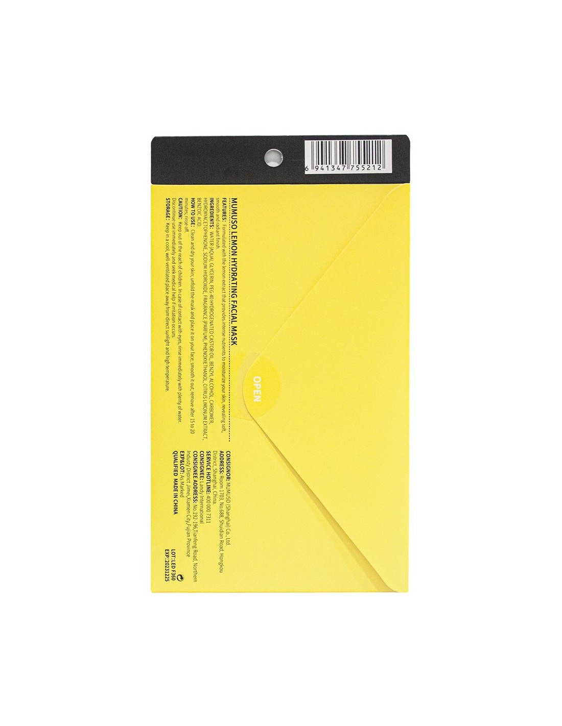 Ce masque facial Mumuso est formulé avec l'extrait de citron qui fournit des nutriments intenses pour hydrater votre peau et révéler un fini doux, lisse et radieux.